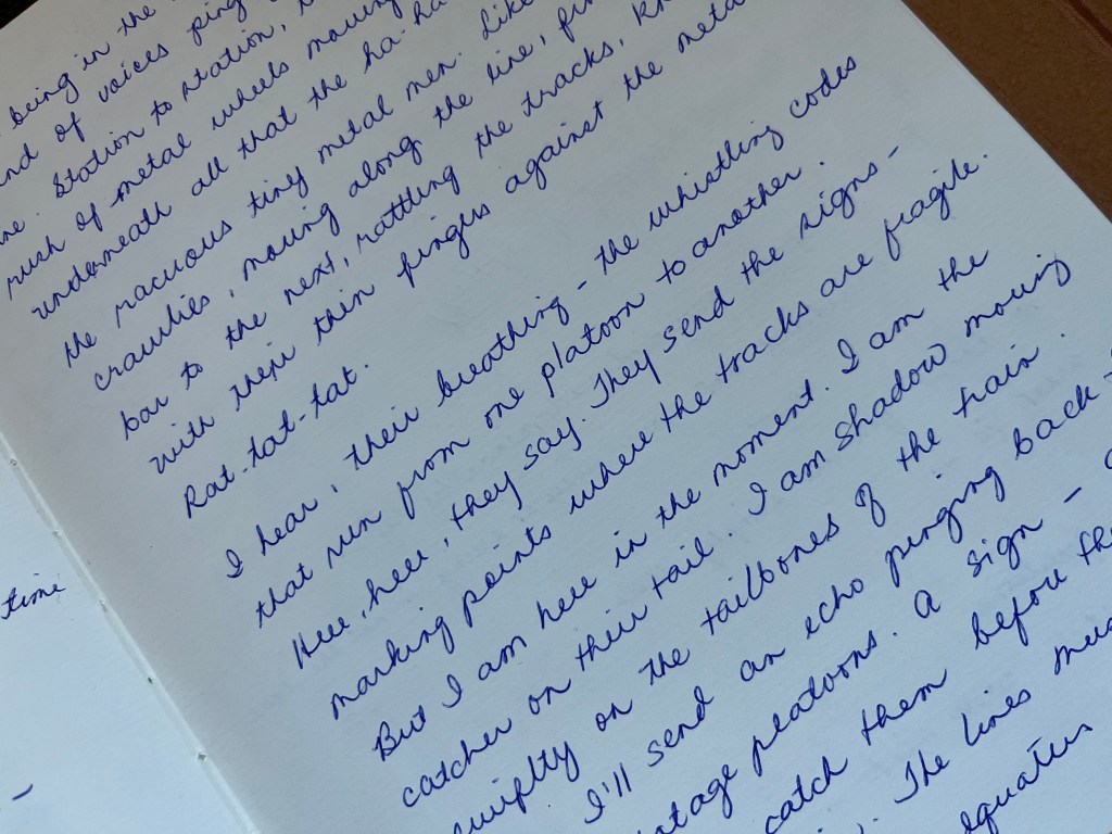 But here I am. It is the beginning of the week. I have returned from my therapy class feeling energized and thinking: you know, you’ve come this far. Look at the horizon. Can you see where this story is going? Can you see how it’s going to end? Can you see what the story is about? Coming on close to 50,000 words, it’s really getting there. (Alarming thought.)
